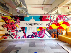 Ananda Nahu foi convidada a pintar o novo escritório da ThoughtWorks na avenida Paulista, em Sao Paulo. Sua inspiração foram as ruas paulistas e sua conectividade com o mundo.